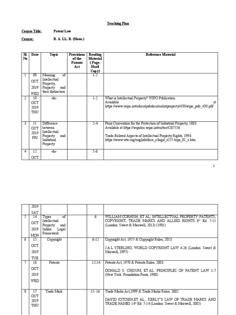 Teaching Plan Patent Law PDF Patent Novelty (Patent)